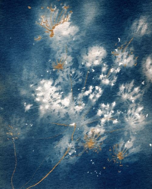 Le cyanotype est une technique photographique sans appareil photo qui consiste à poser un objet sur du papier enduit d’une solution de sels de fer, que l’on produira ensemble, avant de l’exposer à la lumière UV et de le laver à l’eau pour créer des images uniques, blanches et bleu de Prusse.