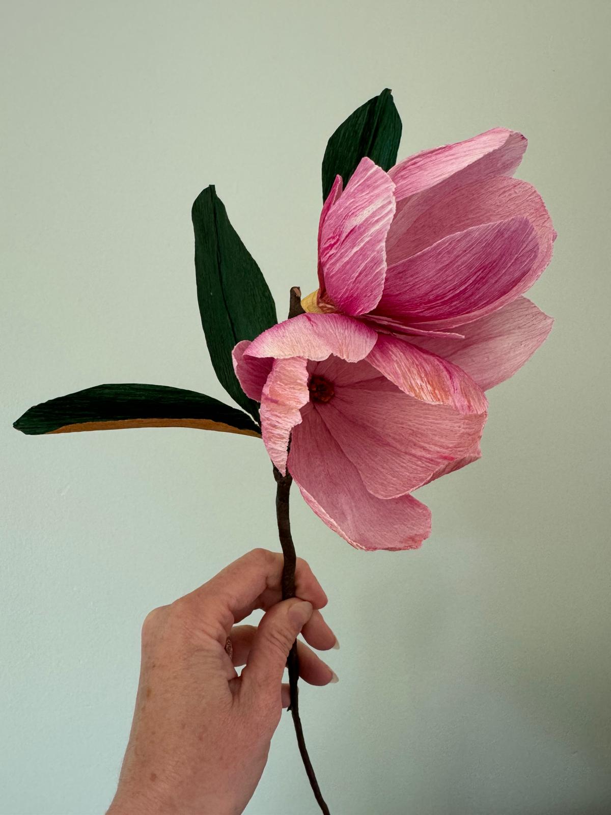 Accompagnés d'une fleuriste papier, vous découvrirez cet artisanat encore peu connu en France. Grâce à un papier crêpé haute qualité, vous repartirez de cet atelier avec un Magnolia (une fleur et une feuille) aussi joli que réaliste.