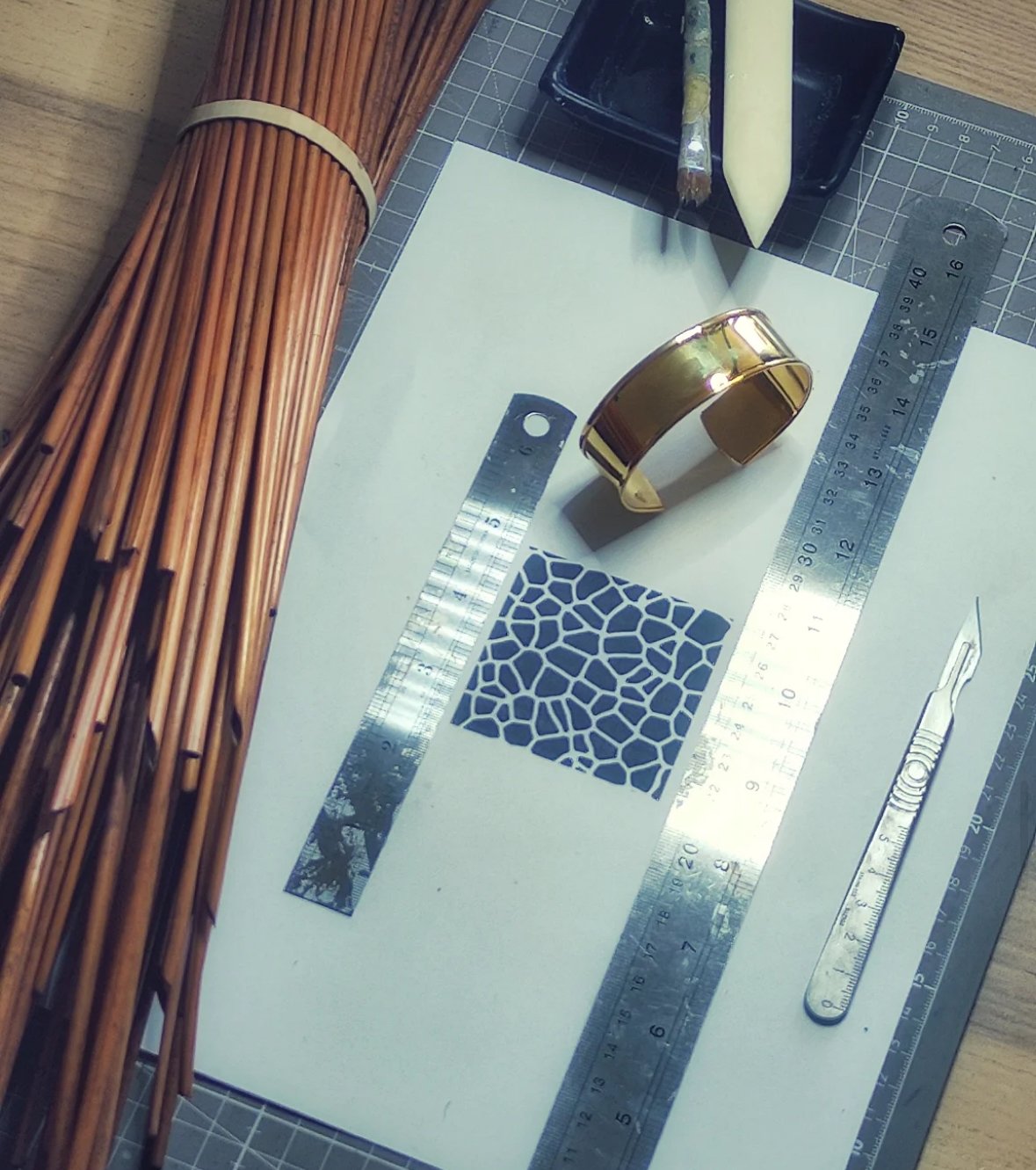 Julien découvre la marqueterie de paille en 2021, par un heureux hasard, au détour de recherches sur la marqueterie de bois. Ce fut un véritable coup de cœur : la douceur du toucher, les nuances infinies et cette manière unique qu’a la paille de capter la lumière. Autodidacte passionné, il apprend en explorant, en expérimentant, puis se perfectionne au fil de stages pour développer un univers à la fois végétal, éthique et raffiné.